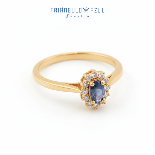 Anillo Lady D con Zafiro de 0.60 CTS Total y Diamantes con 0.16 CTS Total en Oro Amarillo de 14K