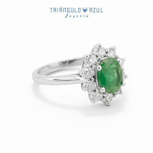 Anillo Solitario de Esmeralda con 0.54 CTS Total en Oro Blanco de 14K