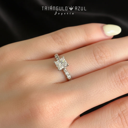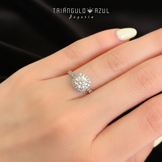 Anillo de Compromiso con Diamante Central de 1.21 CTS I SI1 GIA + Laterales de 0.53 CTS Total en Oro Blanco de 18K