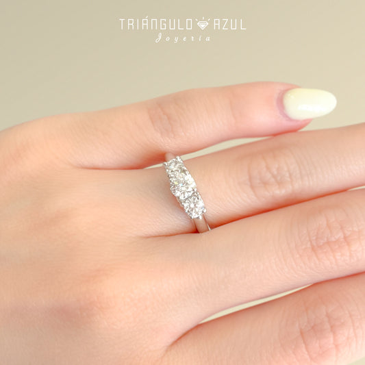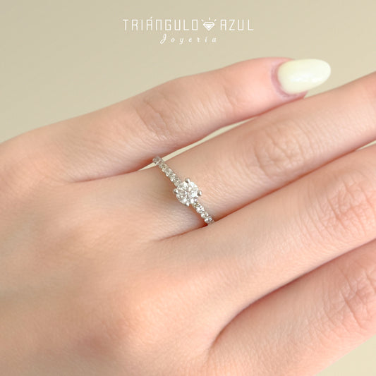 Anillo de Compromiso con Diamante Central de 0.30 CTS E SI2 GIA + Laterales de 0.28 CTS Total en Oro Blanco de 14K