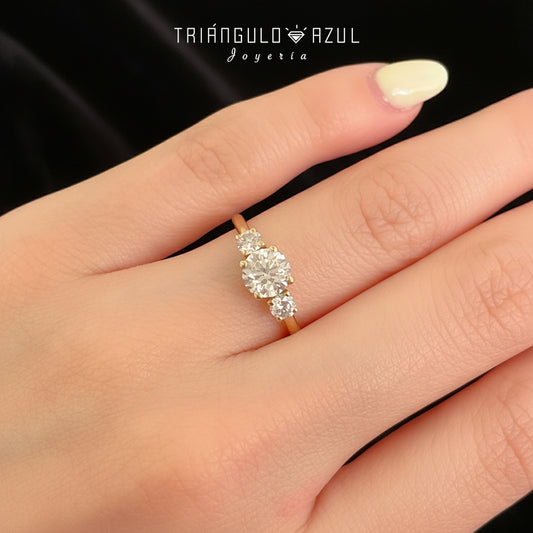 Anillo de Compromiso con Diamante Central de 0.80 CTS J VS2 NON CERT + Laterales de 0.28 CTS Total en Oro Amarillo de 14K