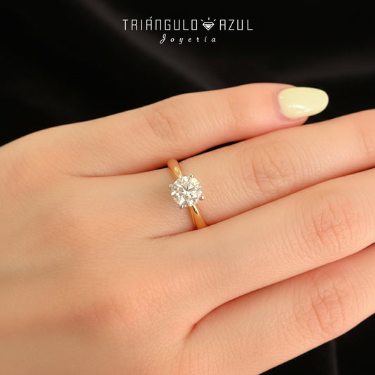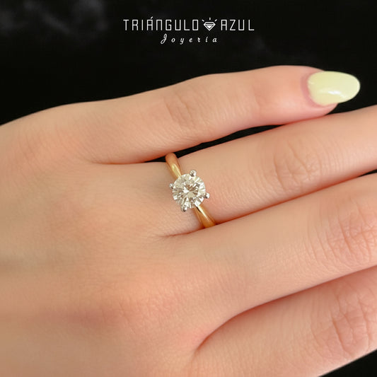 Anillo de Compromiso con Diamante 0.87 CTS K VS1 NON CERT en Oro Amarillo y Blanco de 14K