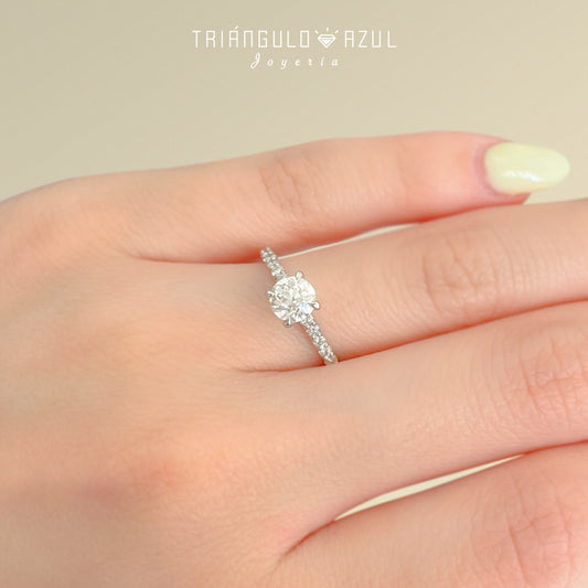 Anillo de Compromiso con Diamante Central 0.71 CTS J SI2 NON CERT+ Laterales 0.26 CTS Total en Oro Blanco de 14K