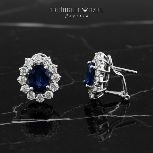 Aretes Lady D de Zafiro con 2.05 CTS Total y Diamantes con 0.83 CTS Total en oro Blanco de 14K