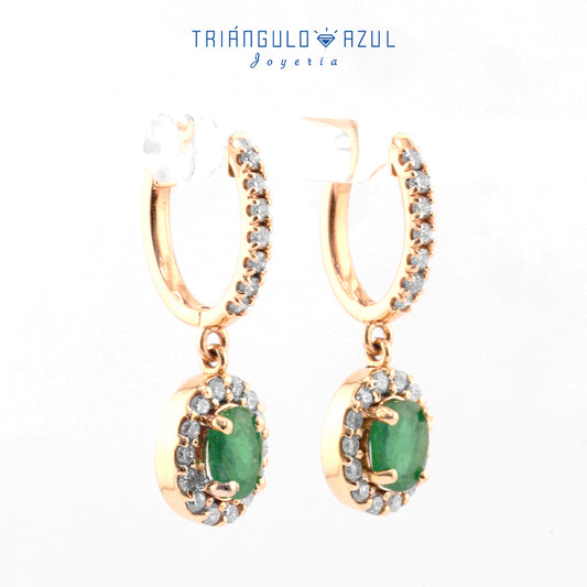Broqueles de Esmeralda con 0.46 CTS Total y Diamantes con 0.25 CTS Total en Oro Amarillo de 14K