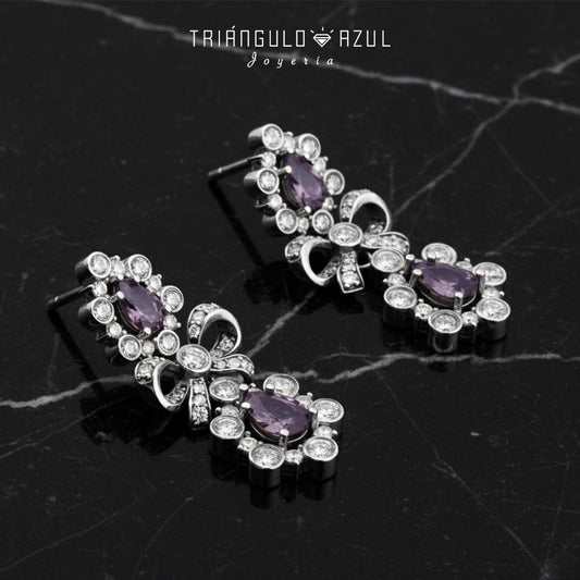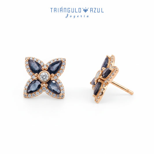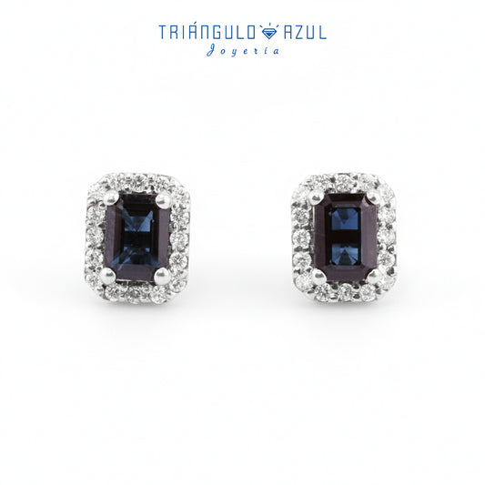 Aretes Camila de Zafiro con 0.65 CTS Total y Diamantes con 0.04 CTS Total en Oro Blanco de 14K