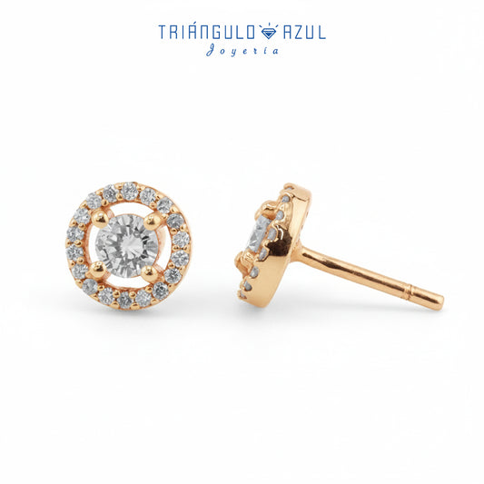 Broqueles Halo de Diamantes con 0.58 CTS Total en Oro Amarillo de 14K