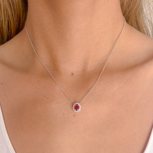 Dije Lady D de Rubí con 0.96 CTS Total y Diamantes con 0.31 CTS Total en Oro Blanco de 14K