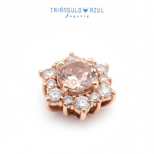 Dije a Juego de Morganita con 0.72 CTS Total y Diamantes con 0.41 CTS Total en Oro Rosa de 14K