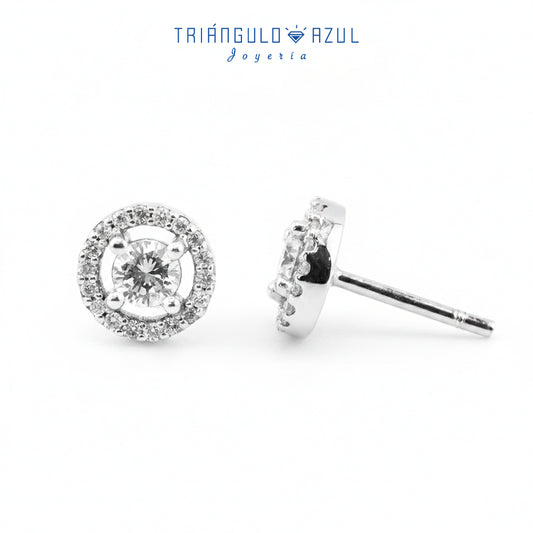 Broqueles Halo con Diamantes Centrales con 0.40 CTS Total y Diamantes Laterales con 0.18 CTS Total en Oro Blanco de 14K