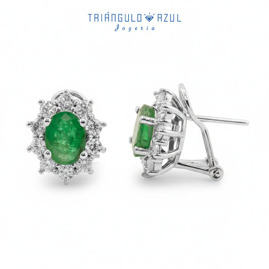 Aretes Lady D con Esmeraldas con 2.92 CTS Total y Diamantes con 1.4 CTS Total en Oro Blanco de 14K