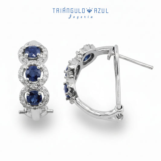 Aretes Halo con Zafiros con 1.30 CTS Total y Diamantes con 0.56 CTS Total en Oro Blanco de 14K