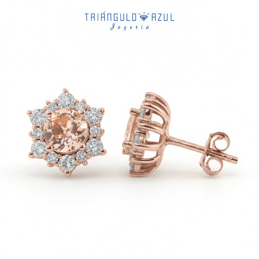 Aretes con Morganita con 1.20 CTS Total y Diamantes con 0.83 CTS Total en Oro Rosa de 14K