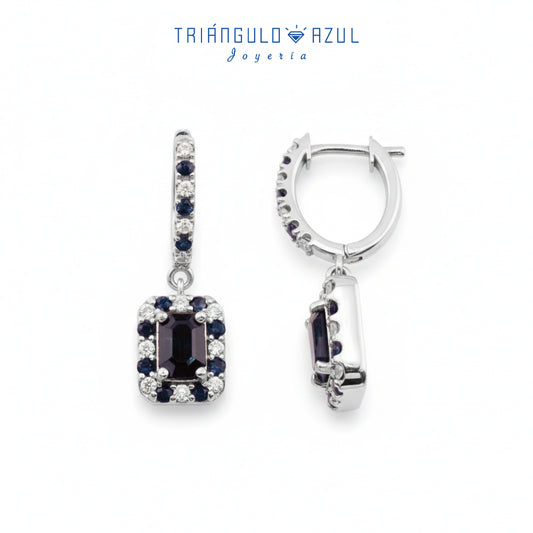 Arracadas con Colgantes con Zafiros con 2.03 CTS Total y Diamantes con 1.02 CTS Total en Oro Blanco 14K