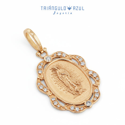 Dije Virgen con Piedras de Diamantes con 0.75 CTS Total en Oro Amarillo de 14K