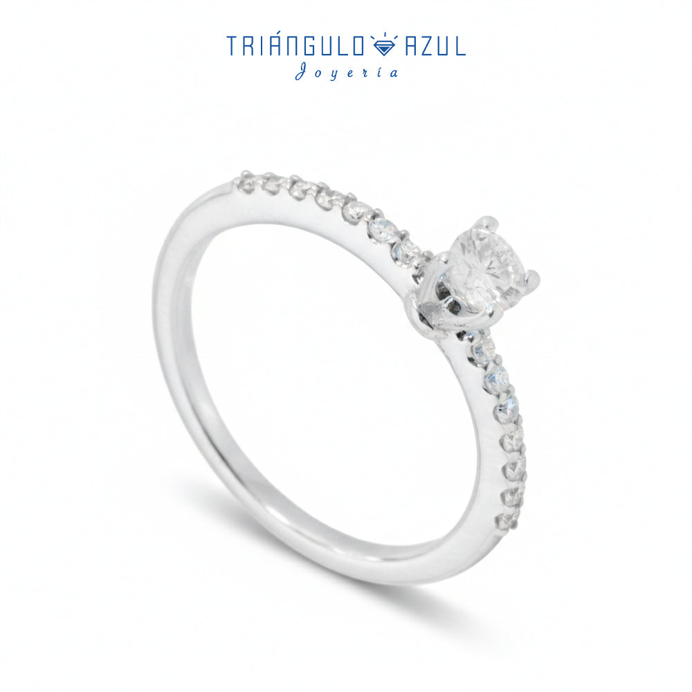 Anillo Compromiso Solitario con 0.22 CTS Total y Laterales con 0.16 CTS Total en Oro Blanco de 14K
