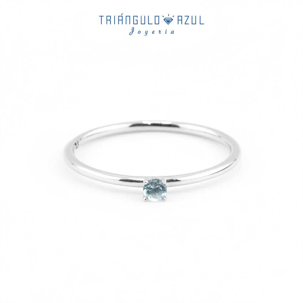 Anillo Solitario de Aquamarina con 0.10 CTS Total en Oro Blanco de 14K