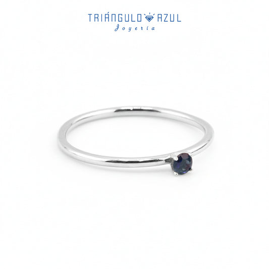 Anillo Solitario de Zafiro con 0.12 CTS Total en Oro Blanco de 14K