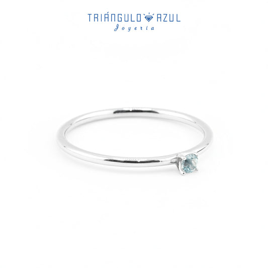 Anillo Solitario de Aquamarina con 0.10 CTS Total en Oro Blanco de 14K