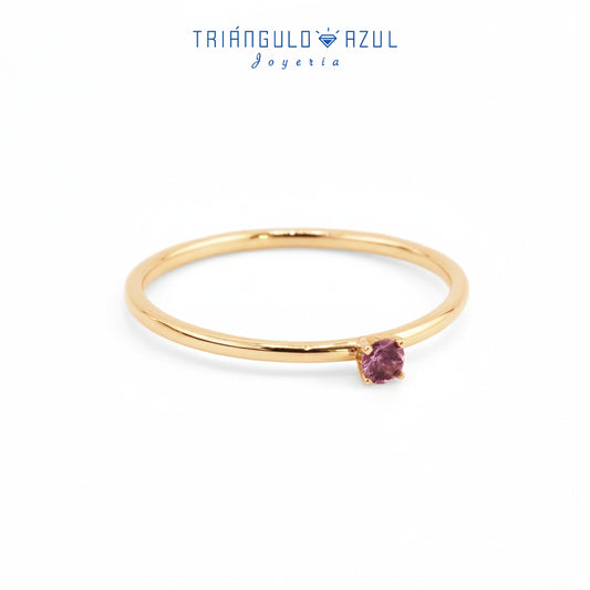 Anillo Solitario de Zafiro Rosa con 0.12 CTS Total en Oro Amarillo de 14K