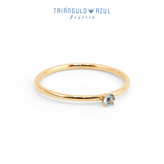Anillo Solitario de Aquamarina con 0.10 CTS Total en Oro Amarillo de 14K